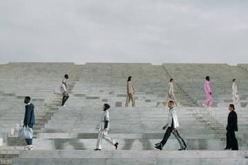 Die Entwürfe von Soulland sind auf dem ersten Blick unaufgeregt und zeitlos, und auf dem zweiten Blick durch die Verknüpfung vielfältiger Materialien, Silhouetten wie Accessoires verspielt und modern. Im Knistern der schwülen Sommerabendluft entfaltet sich vor der monumentalen Stufen-Kulisse mit jedem weiteren Look seine stille Kraft.