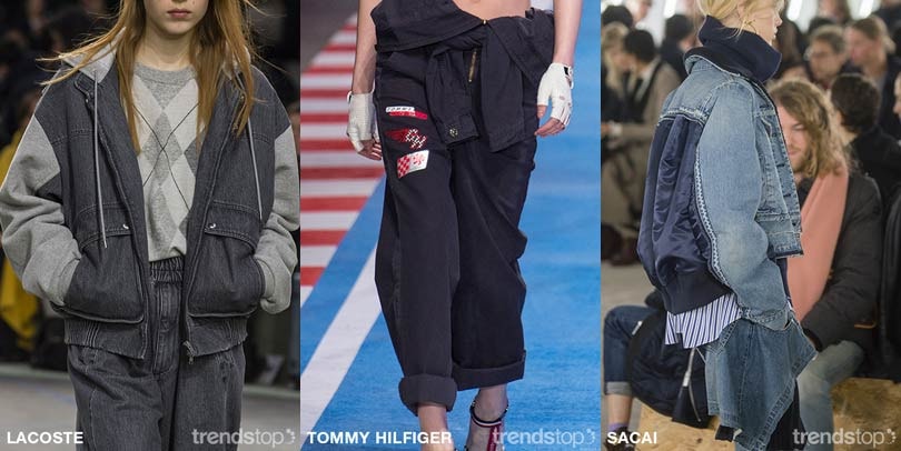 Die äußerst einflussreichen Sportswear- und Athleisure-Märkte beeinflussen Denim durch vom Sport inspirierte Details. Entspannte Silhouetten werden durch Kordelzüge, sportliche Elemente und funktionale Nützlichkeit ergänzt, die stilvoll zwei wichtige Bestandteile jeder Garderobe miteinander verschmelzen lässt.