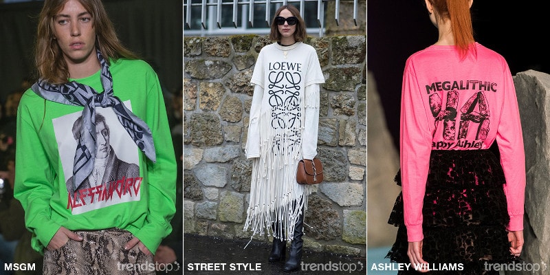 Grafische Embleme, gestickte Logos und gedruckte, fotorealistische Übertragungen schmücken langärmlige Silhouetten in Designs, die den Jugendmarkt direkt ansprechen. Geräumige Formen eignen sich vom leichten T-Shirt bis hin zu kuscheligen Sweatshirts und langen Kleidern für einen wetterfesten, saisonübergreifenden Anspruch.