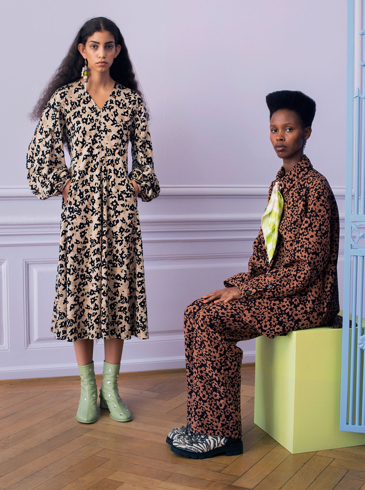 Der Modefilm, den Stine Goya gedreht hat, war vielleicht der schönste dieser Kopenhagener Modewoche und zelebriert die Vielfalt und die LGBTQ-Gemeinschaft. Inspiriert von der Netflix-Serie “Pose” und der begleitenden Ballsaalszene sehen wir sowohl die Schauspielerin Amelia Hoy als auch Models und die Mitarbeiter von Stine Goya, die in ihrem Büro defilieren und tanzen. Durch das Aufeinandertreffen von Farben wie Lila und Gelb und Zebra-Drucken gibt sich die Kollektion ebenso fröhlich. Wenn es nach dem dänischen Damenlabel geht, werden wir alle heiter in die Zukunft tanzen.