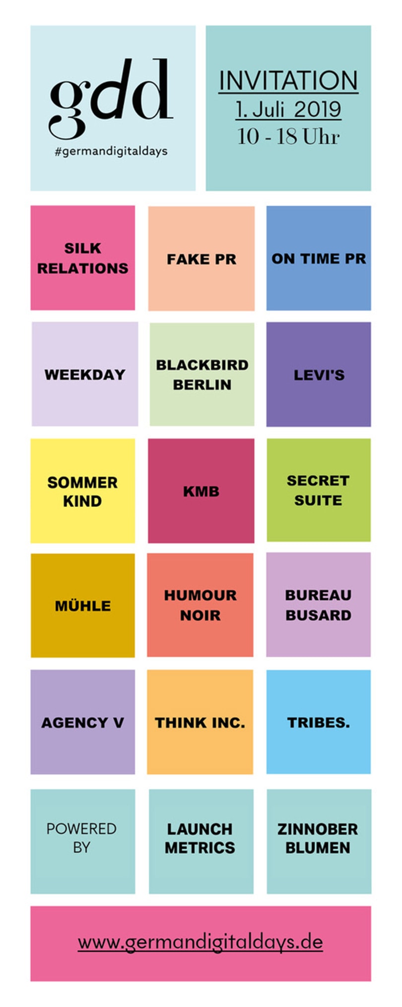 Die German Digital Days sind ein eintägiger Event für Onlinemedien, Content Creators, Influencer, YouTuber, Blogger und Instagrammer in Berlin, den wir am 1. Juli 2019 zum Auftakt der Berlin Fashion Week erstmalig veranstalten.