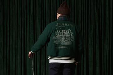 Dieser Ansatz zeigt sich deutlich in der Material- und Produktentwicklung. Schlüsselstücke wie die Bouclé-College-Jacke kombinieren College-Ästhetik mit hochwertigen Stickereien und einem auffälligen ‘19th Hole Clubhouse’-Artwork auf dem Rücken. Die Sawyer-Hybrid-Jacke kehrt in gebürstetem Damast zurück und erhält mit einem grafischen Golfer-Motiv ein markantes Signature-Detail. Die Strickmode bewegt sich zwischen Komfort und Statement. Gebondete Woll-Cardigans mit Kontrastnähten, flauschige V-Ausschnitte und Cardigans mit floralen Motiven sorgen für Struktur, Tiefe und visuelle Spannung. Outerwear-Klassiker wie die Harrington-Jacke und der Isaac-Car-Coat erscheinen in Melange-Ripstop, übergroßem Fischgrätmuster und verschiedenen 3D-Webstrukturen, darunter Golfball-Gewebe und Teddy-Loops.