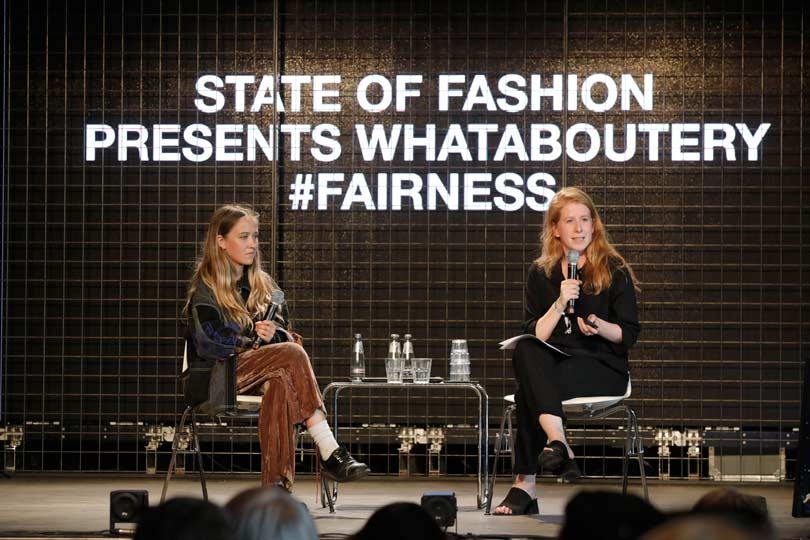 Der britische Designer Christopher Raeburn sprach auf dem Podium im Rahmen seiner Zusammenarbeit mit der amerikanischen Marke Timberland über die Zukunft nachhaltiger Mode. Außerdem veranstaltete die Nachhaltigkeitsinitiative State of Fashion ein Meet-up zum Thema Fairness in der Modebranche mit einer Gesprächsrunde.
