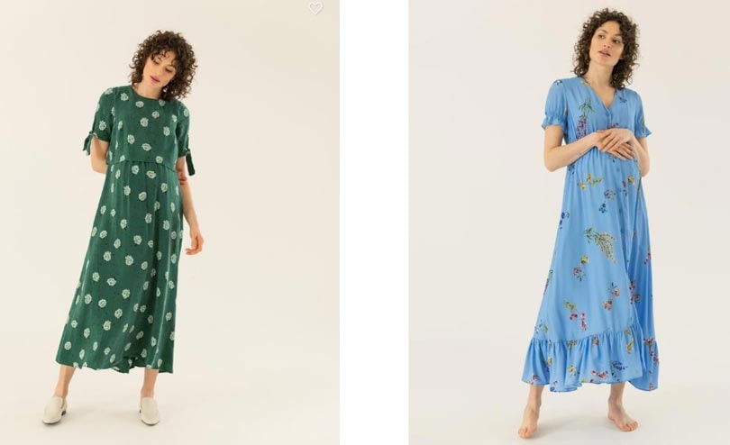 Die Artikel sind nicht nur für die Schwangerschaft, sondern auch für die Zeit danach gedacht, so dass einige Blusen und Kleider durch eine Knopfleiste vorne stillfreundlich sind.