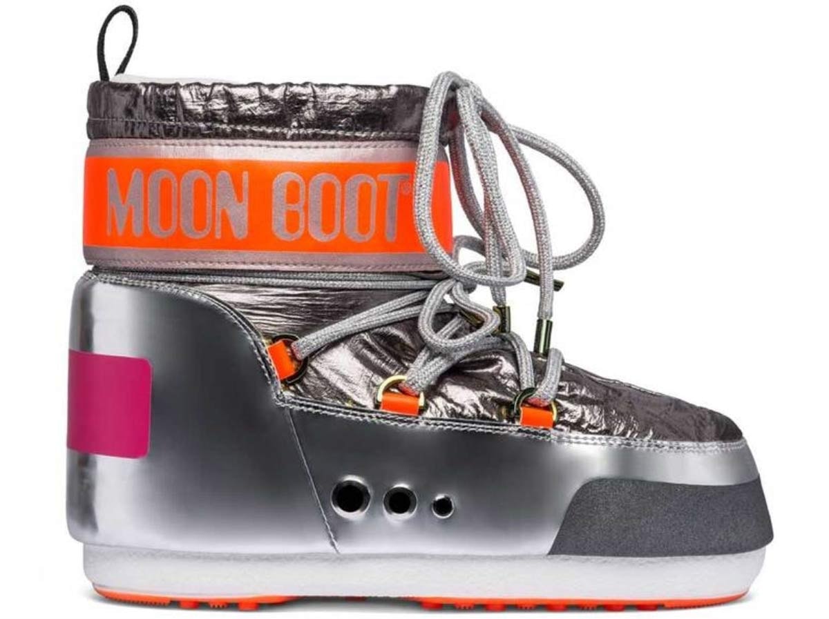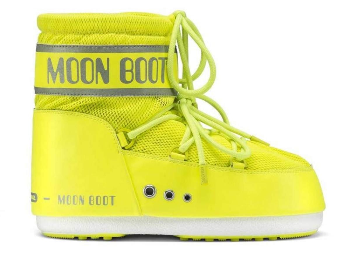 Nicht, was die Farben angeht, denn die bleiben knallig: Neongelb, - orange und -pink sind ebenso anzutreffen wie Babyrosa, Silber und Schwarz. Natürlich auch bunt gemischt, mit sich abhebenden Schnürsenkeln, Sohlen und anderen Details, sonst wären es ja keine Moon Boots.