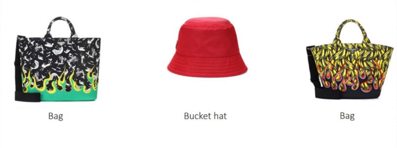 Für diese spezielle Kollaboration hat sich Prada von seinem Archiv inspirieren lassen, um eine moderne Bearbeitung von Kultartikeln vorzustellen, wie zum Beispiel die aufsehenerregenden Sandalen mit Flammen der Frühjahr-/Sommer 2012 Show oder Kultmuster wie Bananen und Meerjungfrauen kombiniert mit grünen und roten Flammen.