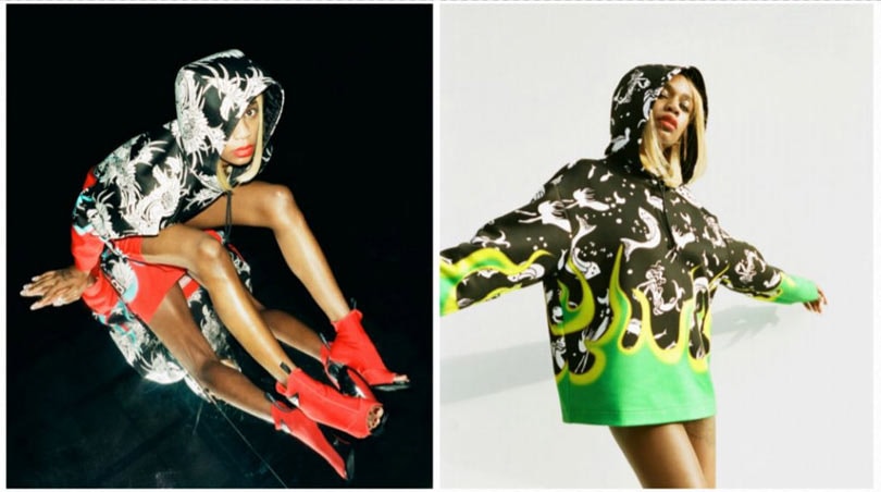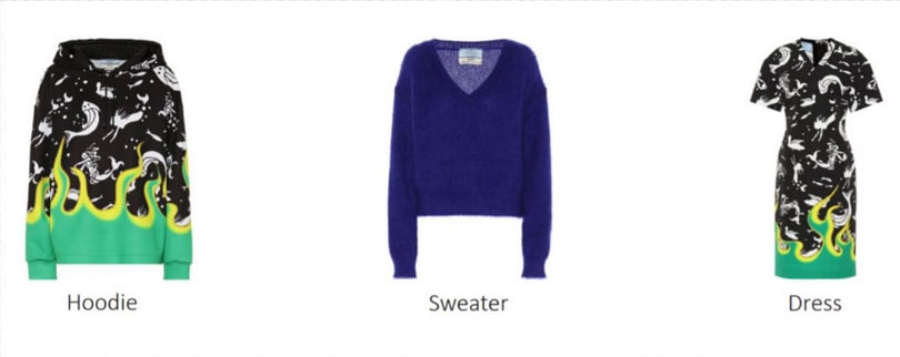 Die Sonderkollektion, deren Preise von 250 Euro bis 1.150 Euro reichen, orientiert sich aber auch an der Männermode Herbst-/Winterkollektion 2018, die eine Streetwear-Richtung und ein eben solches Gefühl verbreitet, zum Beispiel durch zwei auffallende Hoodies, aber auch fünf Kleider in verschiedenen Schnitten und Farben, drei Oberteile und zwei Kaschmirpullover. Zwei Taschen runden die Kollektion ab, ebenso ein roter Fischerhut und drei verschiedene Paar Schuhe.