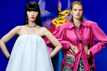 Die Silhouetten der Kollektion sind ausladend, die Materialien vielfältig und die Farben knallig. Von einem pinkfarbenen Kleid, das einer Herzform nachempfunden ist, über weiße Rüschenkleider, Zweiteiler mit schwarz-rotem Herzprint bis zu einer orangefarbenen Strickjacke mit dreidimensionaler Oberfläche und Armreifen in Flammen-Optik – die Kollektion besteht aus „dramatischen, auffälligen Stücken”, sagt Ann-Sofie Johansson, Creative Advisor bei H&M.