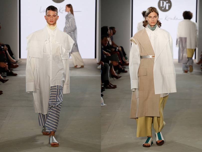 Am Donnerstag gab es auf der Berliner Fashion Week den nächsten Nachwuchspreis zu gewinnen. Zum zehnten Mal stand das Finale des internationalen Wettbewerbs „Designer for Tomorrow“ auf dem Programm, der vom Düsseldorfer Bekleidungshändler Peek & Cloppenburg und dessen Online-Shop Fashion ID ausgerichtet wird. Diesmal durfte Lara Krude den Preis entgegennehmen. Die Absolventin der Hamburger Hochschule für Angewandte Wissenschaften konnte die Jury mit ihrer Kollektion unter dem Motto „Was bleibt“ überzeugen. In der hatte Krude die klassische Herrengarderobe dekonstruiert und die einzelnen Elemente zu originellen neuen Looks zusammengefügt.