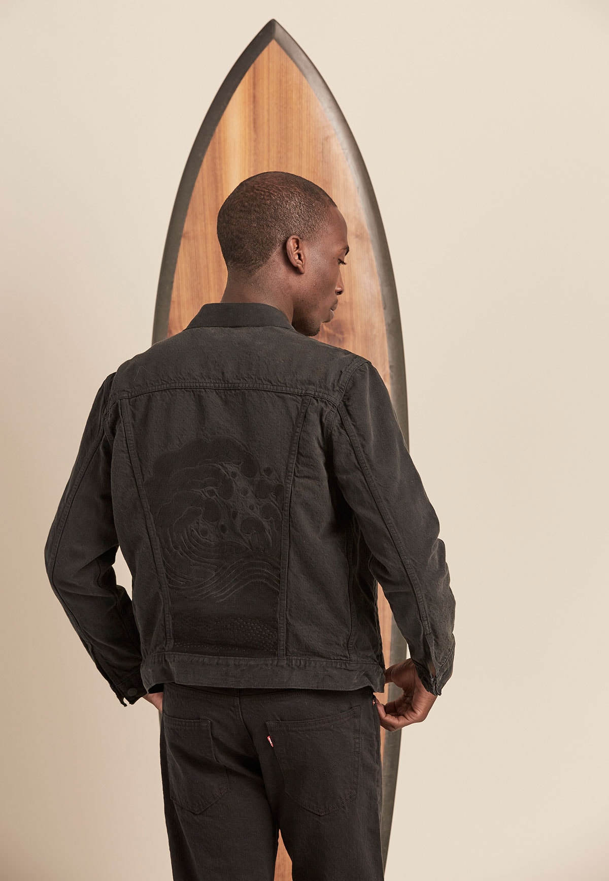 Zurückhaltung ist auch das Stichwort der Herrenkollektion - das Jeansmodell 502TM Slim Taper Fit ist in Indigo und Schwarz erhältlich. Der dafür verwendete cottonisierte Hanf wird direkt am Kleidungsstück gefärbt. Außerdem gehören bedruckte T-Shirts, Hoodies und Jeansjacken zur Kollektion. Für die Prints ließ sich das Designteam von japanischen Wellen-Illustrationen inspirieren.