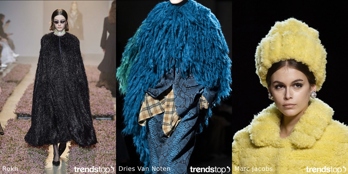 Anwendungen aus den neuen Materialien der Saison spiegeln das Wiederaufleben von Vintage-Mode wider und beleben gemütliche Wintertexturen, die Gefühle von Nostalgie aufleben lassen. Inspiriert von der Kindheit werden Teddyfelle und zottelige Glitzerfasern vorgewaschen, um eine gepflegte Abnutzungsausstrahlung zu erzeugen. Tiefe, flauschige, gebürstete Flore erscheinen durch den Einsatz von retro-infundierten hellen Tönen weicher.