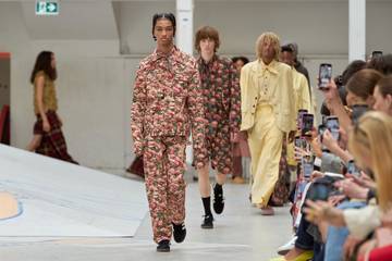 Für den neu ausgewählten finnischen Designer Rolf Ekroth hingegen war es erst der Anfang. Ähnlich wie bei Nielsen handelte es sich um eine sentimentale Erzählung, die in Ekroths Fall mit seinem eigenen Lebensweg verwoben war. Ein integraler Bestandteil der Kollektion war der Rosenprint des Designers, der von seiner Freundin handgemalt wurde und sich auf den Blick in die Vergangenheit durch eine rosarote Brille bezog. Andere Elemente der Linie kombinierten Sportbekleidung, Patchwork-Steppung und Strick, die alle mit vergangenen Zeiten in Verbindung gebracht wurden. Im Gespräch mit FashionUnited sagte Ekroth über das Konzept: "Es ist eine leichtherzige Anspielung auf mich selbst, weil ich meine Teenagerjahre verpasst habe. Jede Saison denke ich, dass dies die Saison ist, in der ich anfange, über etwas anderes nachzudenken, aber dann kehre ich zu dieser Zeit zurück."