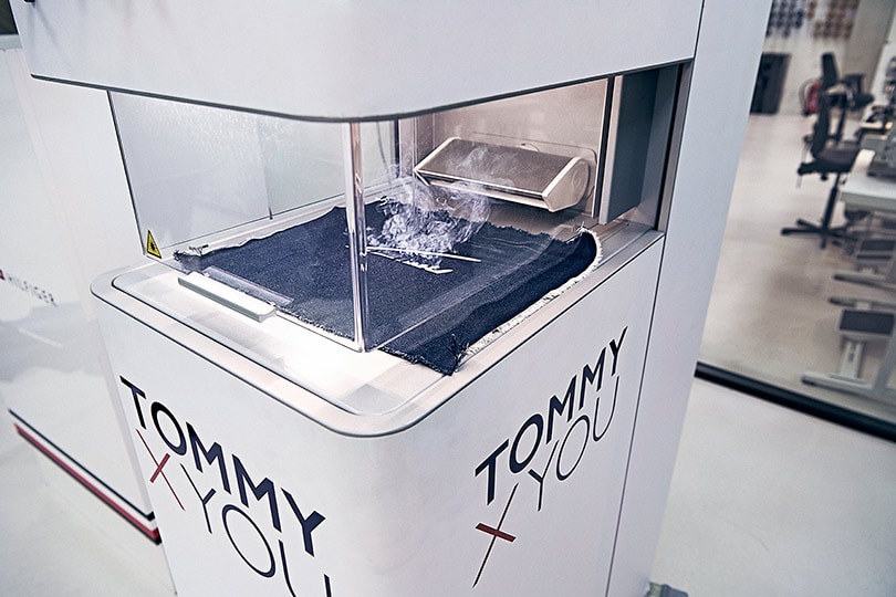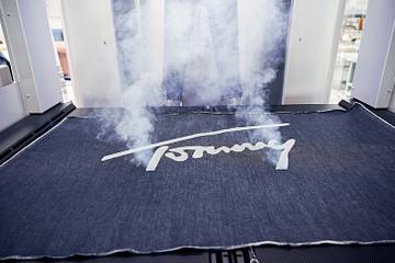 Das Denim-Labor ist die treibende Kraft hinter Tommys nachhaltigem Produktionsansatz, mit dem Schwerpunkt auf der Reduzierung von Wasserverbrauch, Energieverbrauch und Abfallprodukten durch innovative Trocken- und Nassveredelungsprozesse. Die traditionelle Handbearbeitungstechnik wurde auf neue Verfahren der Lasertechnik umgestellt. Mit einem computergesteuerten Laser zum Einbrennen eines Musters auf den Jeans Tommy auf Chemikalien, Wasser und Steine, und da das Verfahren nur den Indigofarbstoff und nicht die Fasern verbrennt, reduziert es die schädliche Staubentwicklung. Die neue Lasertechnologie verringert außerdem die Prozesszeit von 40 Minuten auf weniger als zwei.