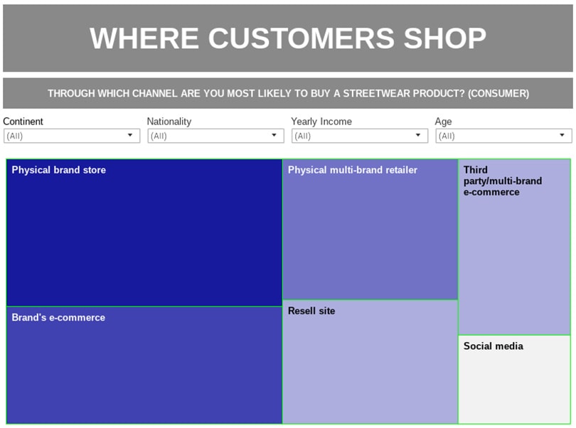 Obwohl Streetwear-Liebhaber digital versiert sind, sind physische Geschäfte für 53 Prozent der Befragten immer noch der bevorzugte Kanal. An zweiter Stelle folgen E-Commerce-Websites, die die Präferenz von 42 Prozent der Befragten erhalten haben.
