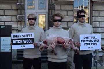 Die Tierschutzorganisation Peta will dies jedoch ändern und sicher gehen, dass den teiInehmenden Männermode-Designern und der Öffentlichkeit die Augen geöffnet werden. Zu diesem Zweck hat die Organisation drei männliche Modells, die alle Veganer sind, zum Somerset House geschickt, dem Veranstaltungsort des Woolmark-Finales, um gegen die Schafquälerei durch die Wollindustrie zu protestieren.