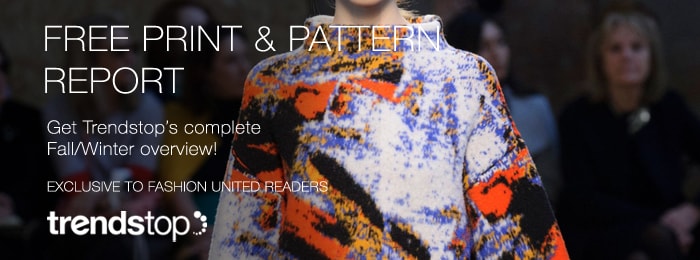 FashionUnited-Leser können eine kostenlose Ausgabe von Trendstops komplettem Herbst/Winter 2015-16 Bericht zu aufkommenden Prints und Mustern erhalten, der 11 essentielle Print-Stories enthält, um Ihre Kollektionen in dieser Saison zu inspirieren. Klicken Sie einfach auf den Banner, um Ihren kostenlosen Bericht zu bekommen.