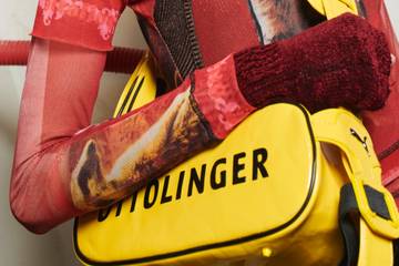 Die Schweizerinnen Christa Bösch und Cosima Gadient, die hinter dem Label Ottolinger stecken, schickten am Sonntag sportliche Taschen mit Schulterriemen auf den Laufsteg. Die Taschen in Farben wie Gelb und Schwarz wurden von einem großen ‘Ottolinger’-Schriftzug sowie einem kleinen Puma-Logo geziert. Außerdem waren High-Top-Sneaker sowie längere Boots, die an Motorradstiefel erinnern, von Puma zu sehen.