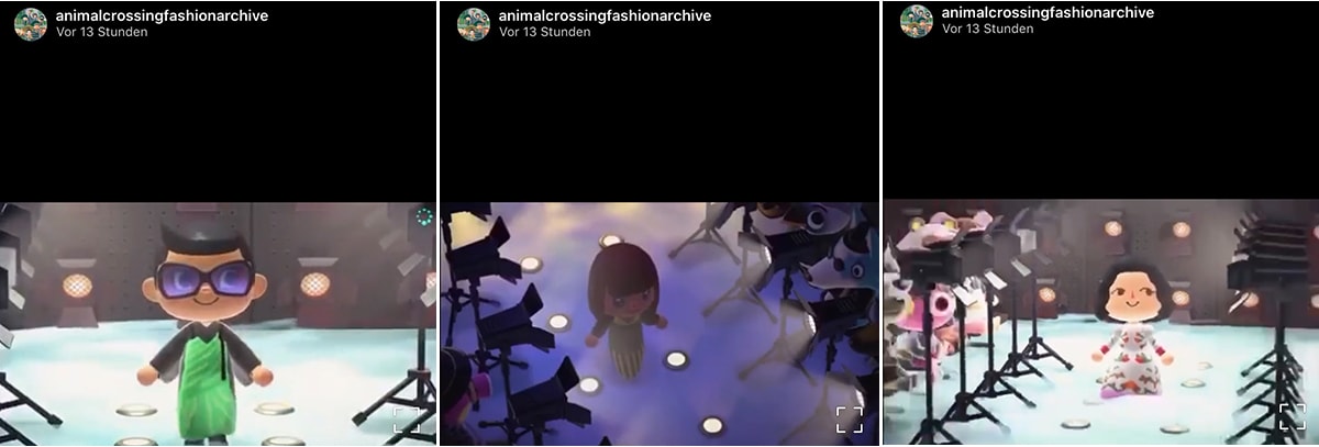 Instagram-Profile, wie Nook Street Market oder animalcrossingfashionarchive, bringen die Looks der Modewochen ins Videospiel und stellen sie der Gemeinde zur Verfügung. So kann jeder, zumindest virtuell, in seinem Lieblingslook von Dirk Bikkemberg bis Prada glänzen.