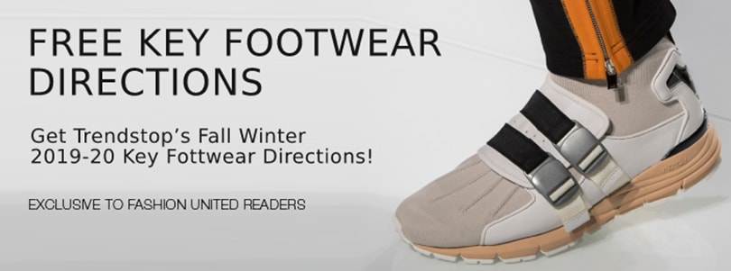 FashionUnited-Leser können kostenlosen Zugang zu Trendstops Bericht Schlüsselrichtungen der Schuhmode Herbst Winter 2019-20 mit allen wichtigen Styles der Laufstege für die kommende Saison erhalten. Klicken Sie einfach hier, um Ihren kostenlosen Bericht zu erhalten.