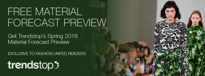 FashionUnited-Leser können kostenlosen Zugang zu Trendstops Frühling/Sommer 2018 Materialvorschau bekommen, die die wichtigsten Materialien der Saison zusammenfasst und vollgepackt mit Informationen zur Beschaffung ist. Klicken Sie einfach auf den Banner, um die Vorschau anzuschauen.