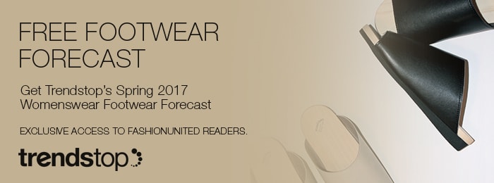 FashionUnited-Leser können kostenlosen Zugang zu Trendstops Frühling/Sommer 2017 Schuhmoden-Vorschau erhalten, die Schlüsselsilhouetten, Styling-Richtungen und inspirierende Fotos enthält. Klicken Sie einfach auf den Banner, um Ihren kostenlosen Bericht zu erhalten.