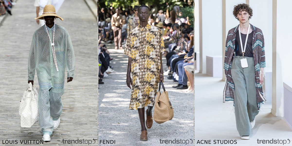 Die Laufstege der FS20-Saison nehmen eine globale Sichtweise an, wobei die Kollektionen von einer Vielzahl von Kulturen der Welt inspiriert wurden. Traditionelle Drucktechniken schmücken hochsommerliche, bequem sitzende Silhouetten, die an traditionelle Kleidung erinnern. Ultraleichte Materialien, die Verwendung transparenter Materialien und subtile Sportdetails, die auf natürliche Accessoires angewendet werden, aktualisieren traditionelle Einflüsse für die neue Saison.