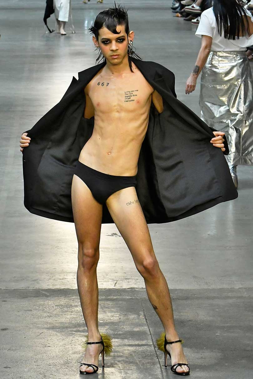 Männliche Models in Abendkleidern, Mini-Röcken oder oberkörperfrei dominierten den Laufsteg.