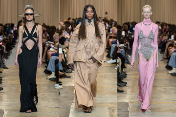 Zu den Statement-Looks gehörten Badeanzüge, die in bodenlange Kleider integriert waren, mit integrierten Bodys, die durch Ausschnitte um die Taille, den Schritt und die Hüften hervorgehoben wurden, während andere Kleider mit schimmernden Badeanzügen überlagert wurden und einige Looks mit Ausschnitten versehen waren, die winzige Bikinioberteile enthüllten. Außerdem wurde Bademode in Burberrys berühmtem Karo über Jumpsuits mit Monogramm gestylt.
