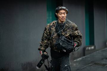 Bei den recht kühlen Temperaturen haben sich die Herren warm eingepackt. Eine beliebte Wahl ist die Zweireiher-Jacke – als langer Mantel oder kürzere Variante – die an Uniformen angelehnt ist. Sie ist meist bis oben hin zugeknöpft und wird dadurch zum Statement-Piece des Looks. Große Knöpfe, die farblich abgrenzen oder in Ton-in-Ton gehalten sind, werden zum wichtigsten Akzent.