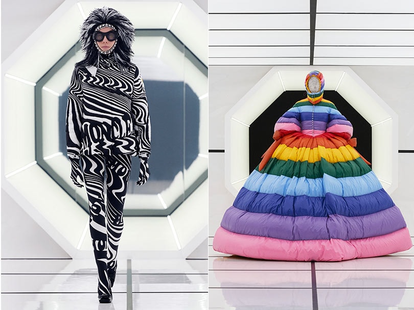 Der letzte Designer für menschliche Mode ist der Londoner Designer Richard Quinn. Trotz des eigentlich voluminösen Daunenmaterials schafft er es eine schlanke Silhouette zu kreieren, die die Trägerin nicht zum Michelin Männchen macht. Pompös sind einige der Stücke aber trotzdem. So gehören auch weit ausgestellte Röcke, wie von klassischen Ballkleidern aller Sissi, zur Kollektion. Bei Muster und Farbe sind Retro-Einflüsse der 60er Jahre, von Floral- bis Zebraprint, zu erkennen.