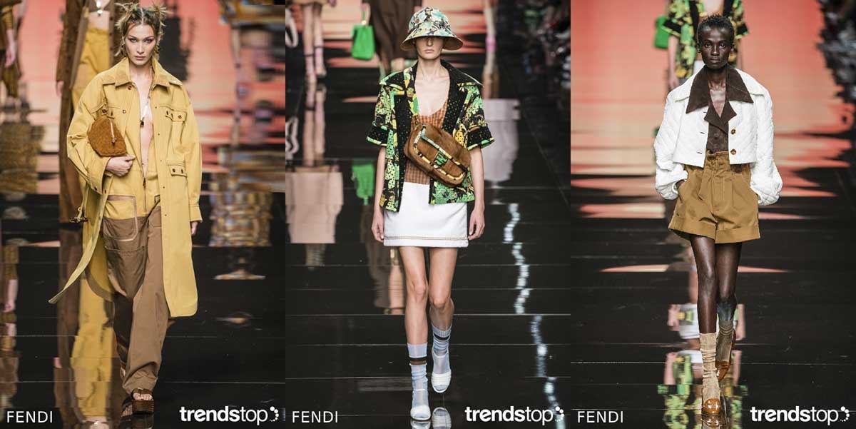 Fendis erste Ready-to-Wear-Kollektion unter der Leitung von Silvia Venturini Fendi lehnte sich an die Männermode an, mit einer Mischung aus übergroßen, kastenförmigen Schnitten, Utility-Kleidung und Hawaii-inspirierten Hemden mit tropischen Blumendrucken. Pelz, Lammfell und Stoff wurden miteinander kombiniert und verstärkten den luxuriösen Reiz praktischer Steppjacken und bademantelähnlicher Mäntel.