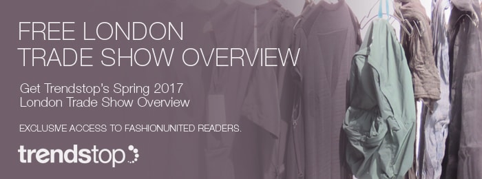 FashionUnited-Leser können kostenlosen Zugang zu Trendstops Frühling/Sommer 2017 Überblick der Londoner Messe erhalten, der die Schlüsselthemen der Saison, richtungsweisende Produkte und Modeinnovationen enthält. Klicken Sie einfach hier, um Ihren kostenlosen Bericht zu erhalten.
