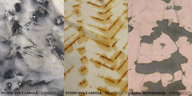 Bilder mit freundlicher Genehmigung von Trendstop, von links nach rechts: Studio Eva x Carola auf der Spinexpo, Studio Eva x Carola auf der Spinexpo, Laura McPherson auf der Spinexpo, alle Frühjahr/Sommer 2020.