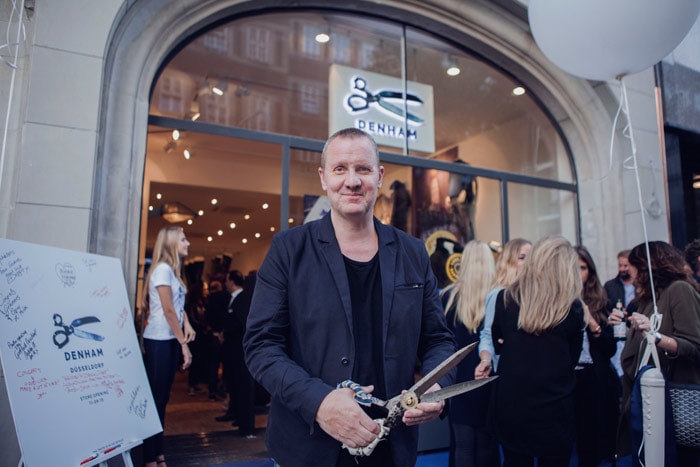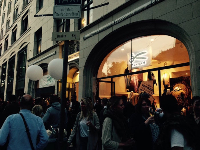 Vor dem steinernen Torbogen eines Hauses an der Heinrich-Heine-Allee steht bereits eine kleine Menschenmenge mit Proseccogläsern und Bierflaschen in der Hand, über dem gläsernen Eingang prangt eine eiserne Schere. Denham The Jeanmaker, die Denimbrand aus Amsterdam, nutzte den besonderen Anlass, um ihren ersten Store in Düsseldorf zu eröffnen. Die richtige Location fand das niederländische Unternehmen an der Heinrich-Heine-Allee, in einem ehemaligen Schneideratelier. „Jedes Mal, wenn man einen neuen Laden eröffnet, lernt man einen neuen Trick. Hier ist es die Jeanssäule in der Mitte, die Herren- und Damenkollektion optisch trennt“, erklärte Jason Denham, Gründer des Labels, der eigens angereist war.