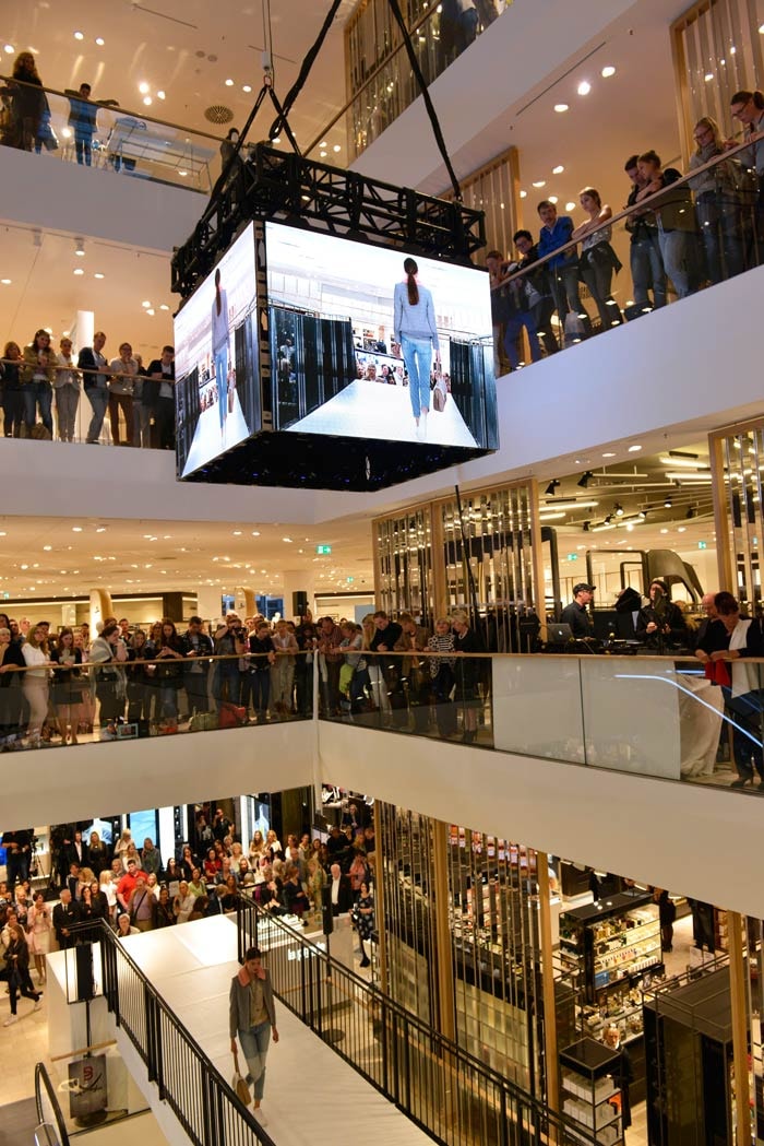 Auf einem ‚fliegenden Catwalk’ werden neuesten Herbst-Kollektionen von Marc Cain, Philipp Plein, Windsor und Boss Orange präsentiert. Die Besucher drängen sich an den Balustraden der verschiedenen Stockwerke des Kaufhauses und blicken von oben auf den Laufsteg herab, oder vom Erdgeschoss aus hinauf. An den Rolltreppen bilden sich gefährliche Rückstaus, da der Catwalk Teile des Weges abschneidet.