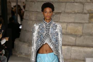 Auch die Kollektion von Chefdesigner Nicolas Ghesquière erschien so außergewöhnlich wie aufwendig. Er zeigte klobige Sneakers und Boxershorts zu ungemein kostbar bestickten Barockmänteln oder Westen mit langen Schößen aus Seide in Eisfarben, Gold oder Silber.