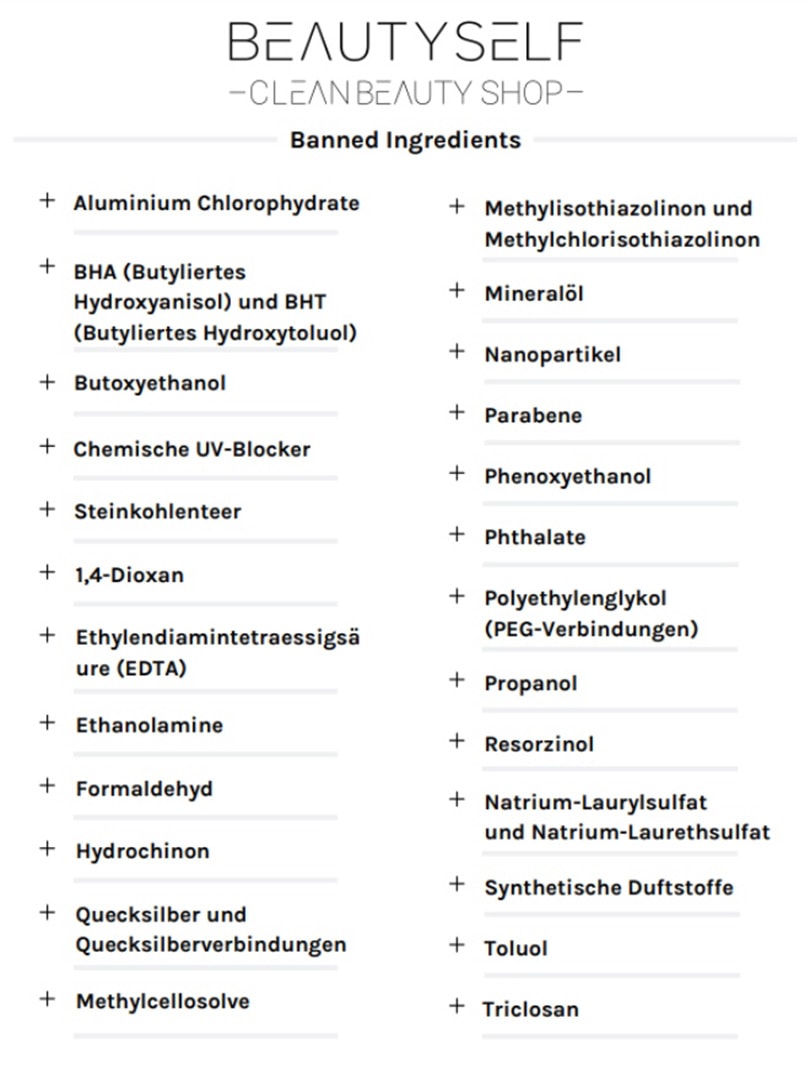 „Im Wesentlichen steht in der Beautywelt „clean“ für „frei von“. Das kann sich jedoch auf vieles beziehen: frei von schädlichen Inhaltsstoffen, die die Haut reizen, die Haare austrocknen, schlecht für die Umwelt sind oder die nachweisbar gesundheitsschädigend sein können. Ob Hersteller von Produkten sich bei der Angabe dabei jedoch auf nur einen Inhaltsstoff beziehen oder aber auf alle, ist nicht eindeutig geregelt“, weiß Beautyself aus eigener Erfahrung zu berichten.