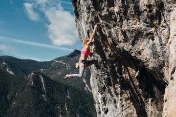 Zu den speziell für den Klettersport entworfenen Kleidungsstücken gehört ein Set aus Leggings und Top mit Tiermotiven oder in Limonengrün, ein Tanktop, eine lange Hose mit Gummizug und ein Set aus High-Waist-Shorts und Tanktop in Fuchsia-Pink. Abgerundet wird die Auswahl an Kletterbekleidung durch ein Sweatshirt in Zusammenarbeit mit Tenaya in Lindgrün mit dem Markenlogo in Fuchsia-Pink auf dem Rücken.