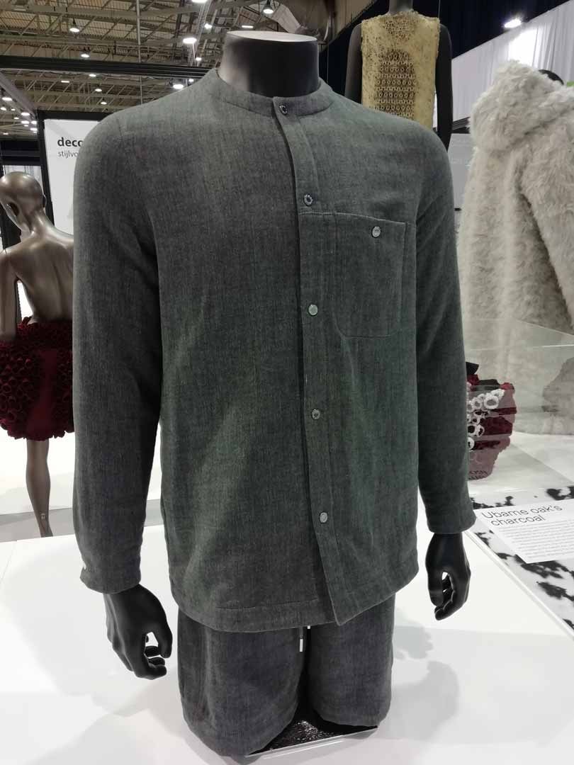 Das Tech-Wear-Label Senscommon hat in Zusammenarbeit mit dem japanischen Textilunternehmen Uchino On-journey entwickelt, ein Kleidungsstück, das aus einem innovativen Textil aus Ubame Eichenholz-Aktivkohlepulver hergestellt wurde, das vor dem Weben mit Baumwoll- bzw. Rayonfasern verwebt wurde. Unter der Leitung der lettischen Designerin Laura Šilinska ist der Stoff des Kleidungsstücks selbstreinigend und kann Gerüche, Feuchtigkeit, Bakterien und Umweltchemikalien beseitigen.