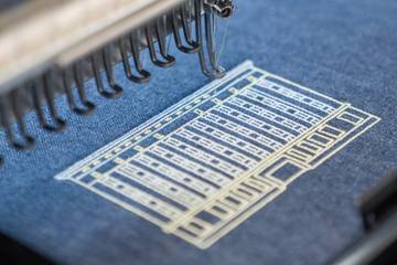 Coloreel hat eine patentierte Technologie entwickelt, bei der das Garn erst während der Produktion in einer Vielzahl an Farben eingefärbt werden kann. Es wird also erst während des Stickens auf die textile Fläche in der Farbe gefärbt, die benötigt wird.