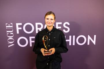 Die Absolventin der Universität der Künste in Berlin beeindruckte die Fachjury, zu der unter anderem Vogues Global Creative und Cultural Advisor Edward Enninful, Kerstin Weng, Head of Editorial Content bei Vogue Germany sowie Model Paloma Elsesser und Scott Lipinski, CEO des Fashion Council Germany, zählten, mit den Entwürfen ihres gleichnamigen Labels. Unter dem Motto „Future Craft“ interpretiert die Designerin das traditionelle Material Spitze auf moderne Weise neu. Gemeinsam mit ihren ehemaligen Kommiliton Wanda Wollinsky und Reiner Törner verwendet sie zudem biologisch abbaubares Latex für ihre Entwürfe, wobei viele Designs ohne Abfallproduktion entstehen.