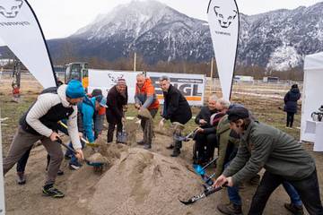 Kiefersfelden, 16. Februar 2022 – Marke braucht Heimat. DYNAFIT, die Bergsportmarke für Athleten, wird zukünftig am Eingangstor der Alpen im oberbayerischen Kiefersfelden beheimatet sein. Heute setzte die Oberalp Gruppe, das Markenhaus für Bergsportmarken, zu dem DYNAFIT gehört, dort mit Lawinenschaufeln den ersten Spatenstich für den Neubau des Headquarters.