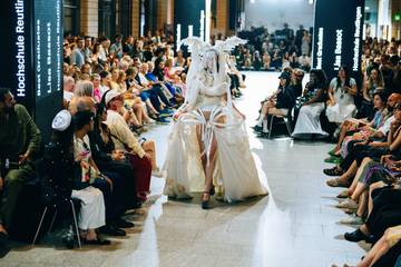 Schon am ersten Tag zeigte sich, warum die Neo.Fashion. fester Bestandteil des akademischen Modekalenders ist: Über den Tag verteilt zeigten über 80 Graduierte von 12 renommierten Hochschulen aus ganz Deutschland ihre Abschlusskollektionen. Mit dabei waren: Hochschule Hannover, Burg Giebichenstein Kunsthochschule Halle, Hochschule für Künste Bremen, Weißensee Kunsthochschule Berlin, AMD Akademie Mode & Design, Hochschule Pforzheim, Hochschule Macromedia, HAW Hamburg, Hochschule Reutlingen, Hochschule Bielefeld, HTW Berlin und Hochschule Niederrhein. Die Themen hinter den Designs sind so vielfältig wie zeitgemäß, sie reichten von politischen Statements bis hin zu neuen Materialansätzen, immer begleitet von einer klaren gestalterischen Handschrift. Dabei lohnt es sich genau hinzusehen, sonst verpasst man spannende Details. Wie beispielsweise den aufwändigen 3D Druck auf Textil von Antonia Dannenberg, Graduierte der Hochschule Niederrhein.