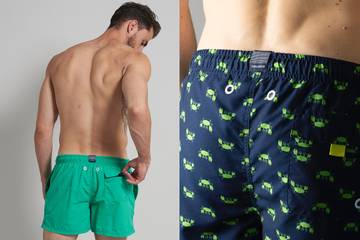 Der CO2-neutrale Bodywear Hersteller sorgt mit seinen bunten Badeshorts aus kräftigen Blautönen mit Motiven aus dem Meer, wahlweise in Orange oder Neongrün für Urlaubsfeeling pur. Die Badehosen gibt es in unterschiedlichen Beinlängen und sind teilweise sogar bis Größe 8XL/18 erhältlich. Der Preis liegt zwischen 29,99 und 34,99 €. #greenbodywear