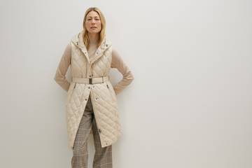 Im LT August, das Walkcape gepatcht mit verstepptem Nylon als Kragen und aufgesetzten Taschen, die lange Weste mit Relief-Stepp, in Khaki.