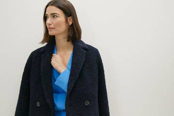 Der Puffer ist der Go-to-Cocoon-Artikel für kaltes Wetter: Als Keylook in kürzerer Form, mit femininem Schalkragen in twotone metallic Optik oder Knallfarbe. Dazu wird eine lässige edle Flanellhose plus Grobstrick auf Linksmasche mit partiellen Glanzeffekten gestylt. Der Webpelz - Mit Biker/Aviator Anmutung – oder als Longweste, hohem Kragen oder Cocoon-Kapuze ist er der Favorit dieser Saison - weich und opulent, immer alltagstauglich. Er ergänzt gemusterten Strickkleider oder im tonalen Shading Flanell und schicke Bluse. Glatte Wolle - als Blazer-Mantel-Hybrid in einer umhüllenden, ungefütterten Form in starken Farben. Am liebsten kombiniert zum herbstlichen Blusenkleid aus Twillstruktur, flared Denim oder lässigen Check Hosen plus Kaschmirpulli. Bouclé - ob als Strickpulli oder als taillierte Jacke. Keylook ist ein schmal geschnittener Mantel über einem Druckkleid oder Mini Pepita Suit aus Komfort Stretch.