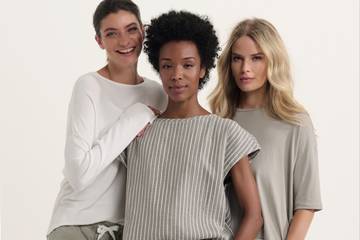 Im Zentrum stehen weich fließende Materialien wie Satin, Lyocell und Modal sowie neue Sweat- und Denim-Qualitäten. Klassische Prints wie Leo, Zebra oder Streifen werden neu interpretiert, ergänzt durch Ethno- und Tie-Dye-Optiken. Faux Fur, Shearling und Teddy-Plüsch prägen die Outerwear, während modische Blusen, bedruckte Satinröcke und sportliche Strickstyles die Kollektion abrunden.