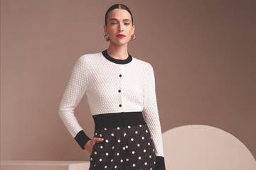 „Dotted Delight“ ist eine lebhafte und fröhliche Kapsel kollektion, in der Pünktchen im Mittelpunkt stehen. Mit einer beeindruckenden Farbpalette aus leuch tendem Babyblau, betörendem Rot sowie zeitlosen Schwarz-Weiß-Kombinationen verleiht diese Kollektion klassischen Prints eine moderne, spielerische Note. Neben den charakteristischen Polka-Dots wird ein dezenter, zweifarbiger Blätterdruck präsentiert, der sich mühelos mit anderen Teilen mixen lässt und einen frischen, vielseitigen Look kreiert. Feminine Silhouetten dominieren die Kollektion, wobei fließende Kleider und klare, aber weiche Schnitte eine Balance aus Eleganz und Charme schaffen. Luxuriöse Stoffe wie Seiden-Leinen-Mischungen, gepunkteter Tweed und ein Hauch von Glitzer in paillettenbesetzten Materialien verleihen Textur und Tiefe.