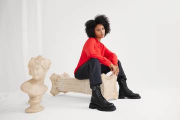 ‚Edgy goes Classy‘ zeigt pure Looks aus klassischen Essentials. Monochrome ‚Head-to-Toe‘ Outfits sind die Highlights innerhalb dieses Themas. Weiches Bouclé trifft auf Lederimitat, wodurch ein cleaner, minimalistischer Look entsteht. Im Gegensatz zu den ersten drei Themen, dominieren hier dunkle Farben wie Quiet Shade, Glacier Grey, Fiery Red, Grape Wine sowie Black Beauty.