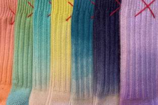 Farbenfroh und fröhlich, dabei cozy und kuschelig weich – das sind die bunt gebatikten Socken von Mell-O